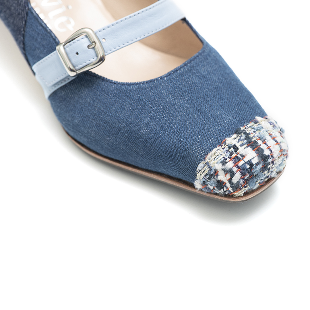 • Punta en tela tipo Chanel: un guiño textil que agrega refinamiento y textura.