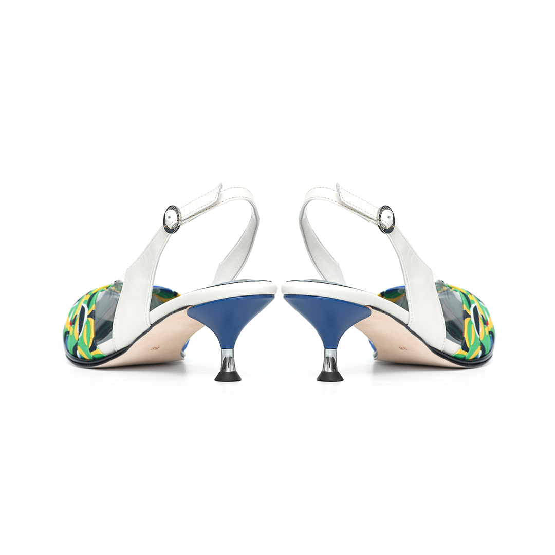 Tira trasera regulable con hebilla grabada: sujeción cómoda y segura en formato slingback.